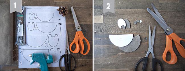 لهذه الحرفة سنحتاج إلى: قماش اللباد للأرجل والوجه، مسدس الغراء أو غراء كثيف، خرز، أزرار، إبرة وخيط، أكواز.