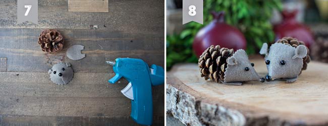 مثل هذا القنفذ المصنوع من الأكواز يمكن أن يكون أساسًا جيدًا لحرف حيوانات أخرى. حاول صنع ثعلب من اللباد البرتقالي بذيل من الصوف، أو فأر. بالنسبة للأرنب، يلزم العمل على قالب الوجه بشكل إضافي.