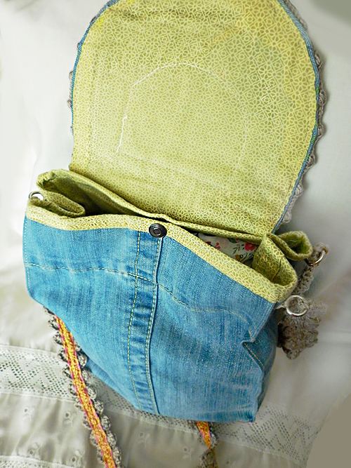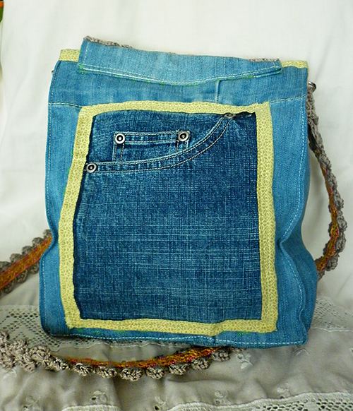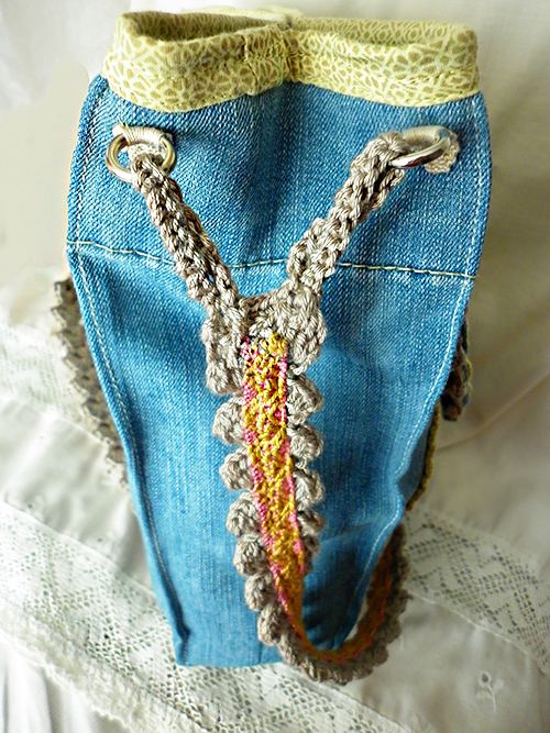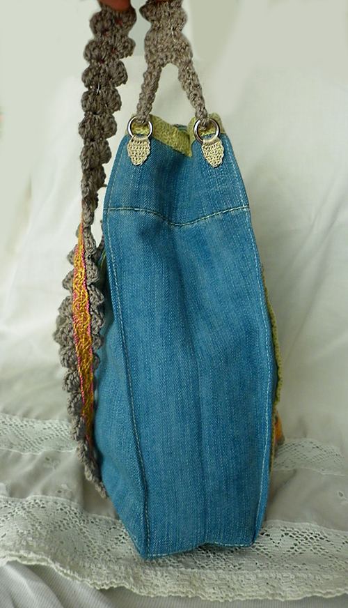 Velmi hezky vypadá s lehkým bavlněným šaty, s jakýmkoliv oblečením v etno a country stylu, casual. Moje varianta je jen myšlenka pro dekoraci a recyklaci nohavic.