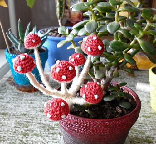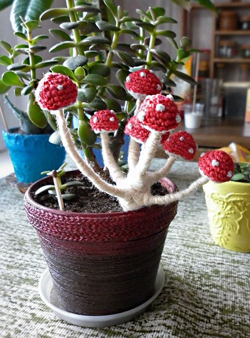 Muchomůrky v květináči s tlustici.