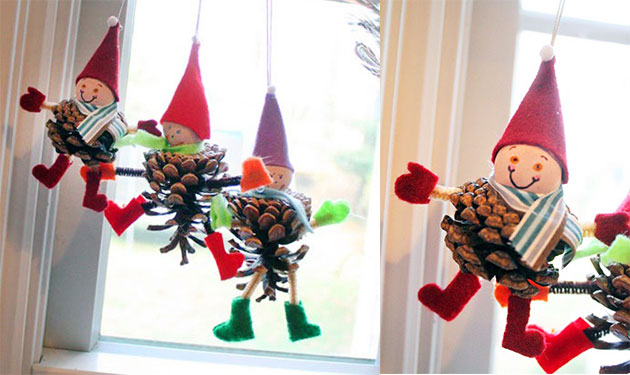 यह एक साधारण शिल्प है, जो देवदार के शंकु (यहां - डगलस का पेड़) और ओक के पत्तों से बनी होती है।