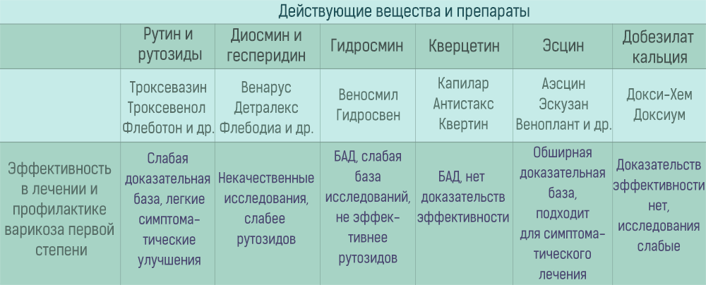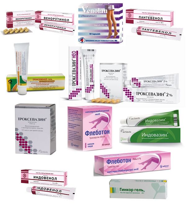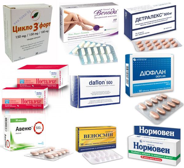 प्रारंभिक चरण के वैरिकोज़ और सीवीआई का इलाज निम्नलिखित पदार्थों से किया जाता है: