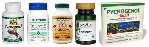 - पिक्नोजेनोल (फ्रेंच मैरीटाइम पाइन छाल का अर्क)
