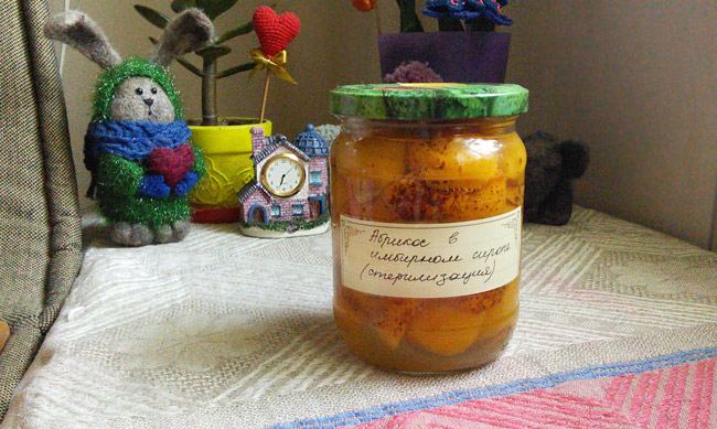 Prepolovljene marelice prelila sam jakim sirupom od šećera i limunske kiseline. U svaku staklenku stavila sam malo svježeg đumbira - po kolut 3-4 mm na pola litre staklenke. Dodala sam nekoliko kapi vanilijevog ekstrakta. Staklenke sam oprala sodom, kuhala poklopce. Sterilizirala sam već pune staklenke u loncu s kipućom vodom, konzervirala odmah.