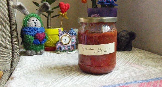 Nije mi se svidjelo. Previše mirisna, slatka šljiva se svađa s okusom drugih sastojaka u adžici. Može se jesti, ali šljiva se konstantno prisjeća. Imala sam malo zelenkaste šljive. Sada mi se ne daje praviti ni jabukovu adžiku, ostaviću to za sljedeću godinu.