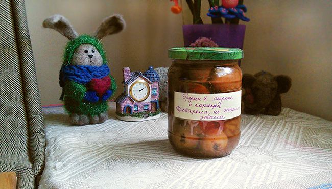 Naišla sam na sitne kruške, vrlo mirisne, ali potpuno bez okusa. Nisam se usudila baciti ih. Nabodila sam ih vilicom, u loncu prelila šećernim sirupom s limunskom kiselinom i malo ih kuhala dok kruške nisu potamnile i malo pustile sok. Dodala sam vaniliju i cimet po ukusu, raspodijelila po steriliziranim staklenkama i zatvorila.