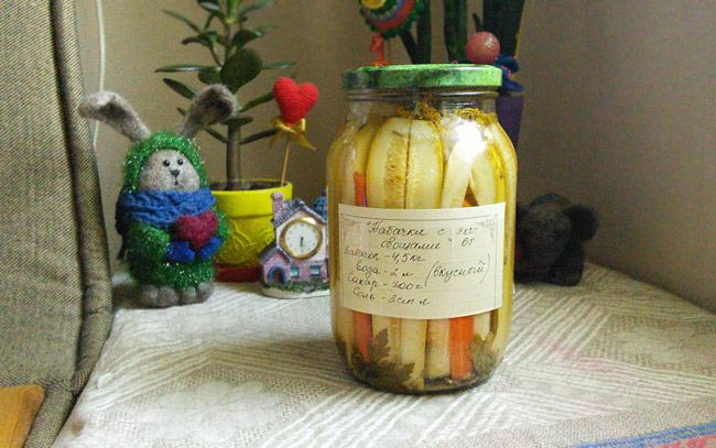Pod okusom krastavaca mislim na identičan marinad koji se koristi za mariniranje krastavaca i rajčica. Mnogo je truda s njima, bolje ih konzervirati u kolutovima. S mrkvom treba biti oprezan - loše se zagrijava i počinje fermentirati, jedna staklenka me iznevjerila. Prelijevala sam samo 3 puta, bolje 4 ili sterilizirati napunjene staklenke.