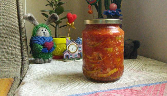 Ukusno, kao i većina povrtnih salata za konzervaciju. Od sebe: mljevena paprika, zagrijana na ulju. Jednom kad probate, nećete moći bez paprike.