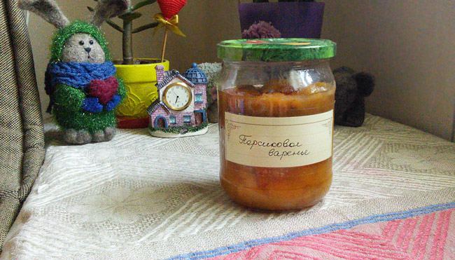 Jedini recept koji me potpuno razočarao. Recept je preuzet s Povarenca. Karamela se priprema od šećera u tiganju, zatim se dodaju pripremljene breskve. Problem je u tome što aroma i okus breskvi nisu u skladu s karameliziranim mirisom smešnog šećera. Okus šećera odvojeno, breskve odvojeno. Neću ponavljati sljedeće sezone.