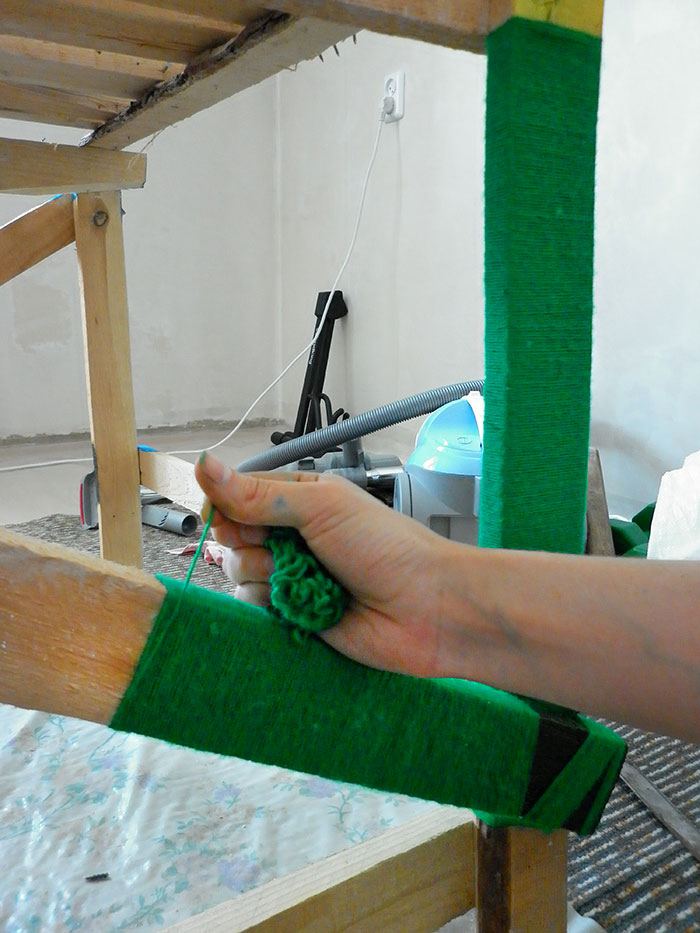 - Pustimo boju da se malo osuši i započinjemo monotonu, ali nerve umirujuću aktivnost - omatamo daske pređom.