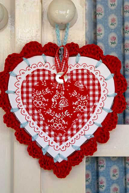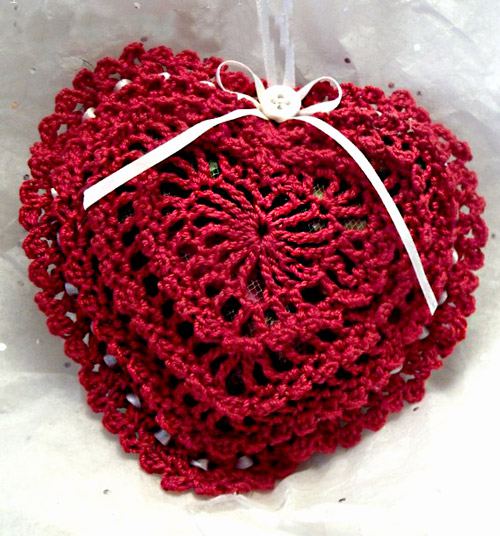 Setiap objek dapat diberi sentuhan romantis meriah dengan bantuan hati rajutan. Di bawah ini adalah hati rajutan crocheting dengan pola.