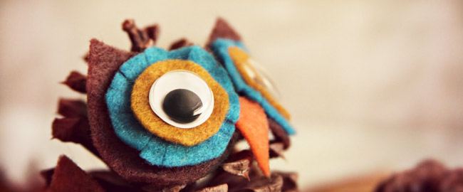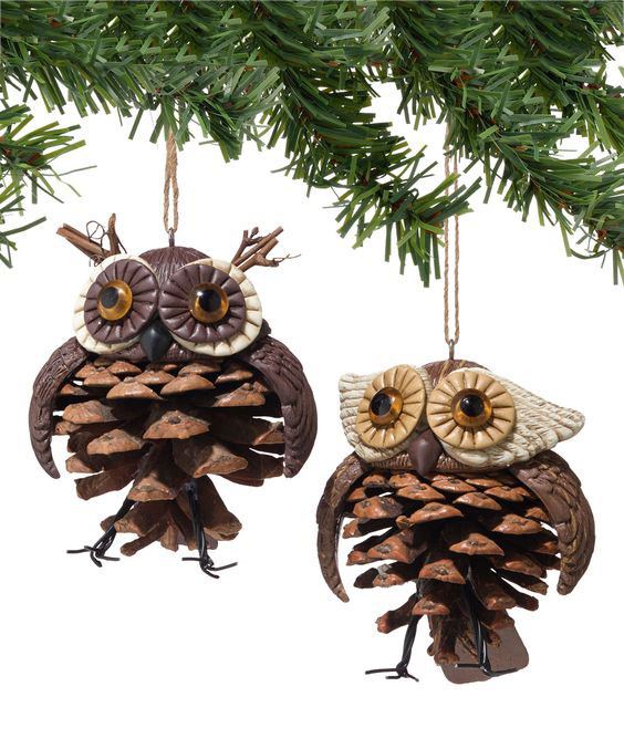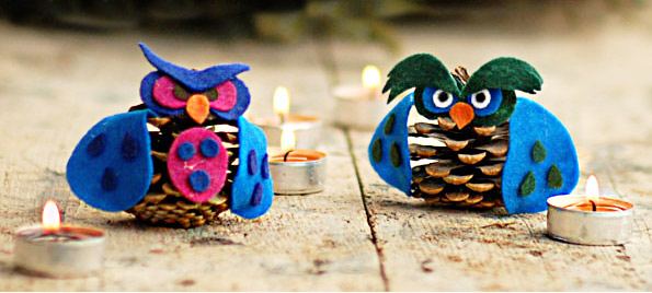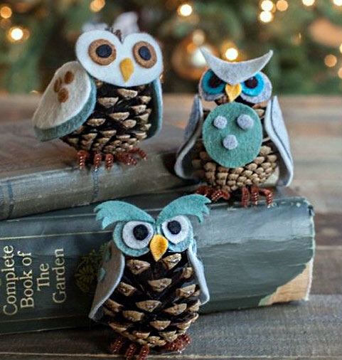 2 gufi di pigne con occhi in feltro