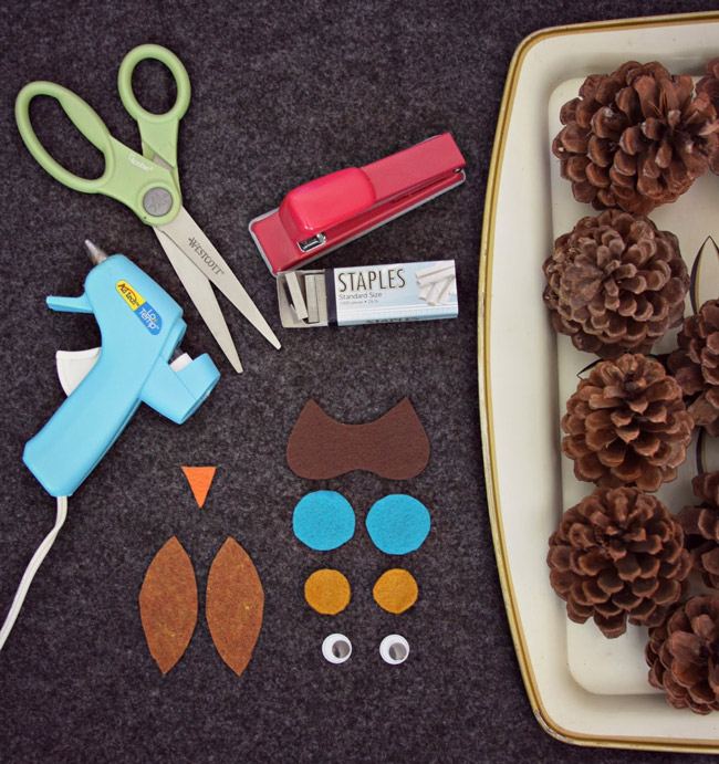 - Per prima cosa, rimuovete alcune scaglie della pigna per fare spazio agli occhi, in modo che non sembri che siano fuori posto sul vostro gufo.