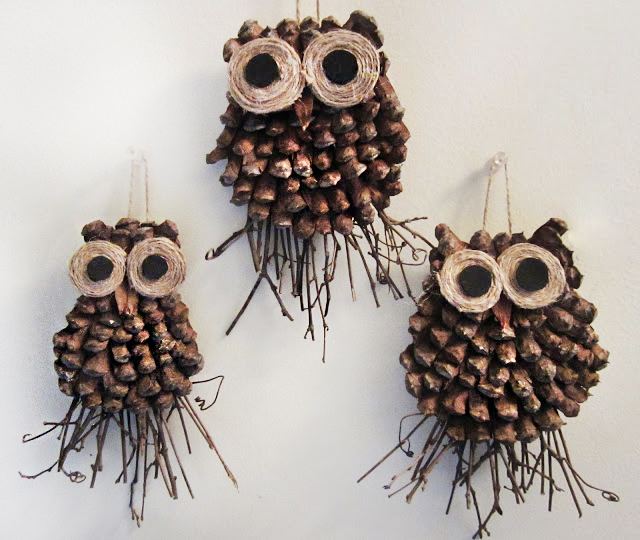 Gufi di pigne come pannello decorativo
