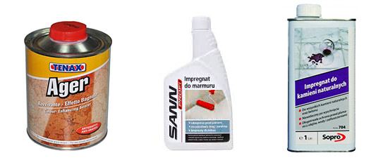 L’impregnante protegge la pietra da umidità, grassi e detergenti domestici. La sua composizione include: silossani, polimeri, carboidrati. Questi materiali penetrano nei pori della pietra senza occluderli e polimerizzano. In commercio ci sono impregnanti ecologici che possono essere utilizzati su superfici di lavoro in cucina e piastrelle di pietra. Gli impregnanti non permettono la formazione di macchie di vino e di frutta, e non fanno uscire i sali sulla superficie della pietra.