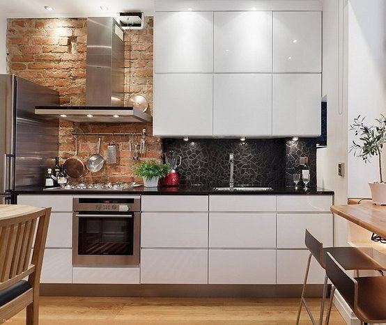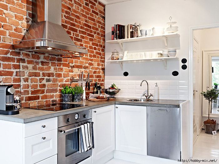 Voglio utilizzare il mattone nell’interior design. Dalla ristrutturazione del mio monolocale è rimasta una parete in mattone grezza e non coperta con cartongesso nella cucina. Questa parete ha un aspetto così stiloso e loft che ho deciso di rinunciare alle tradizionali piastrelle nel paraschizzi e di occuparmi del trattamento del mattone.