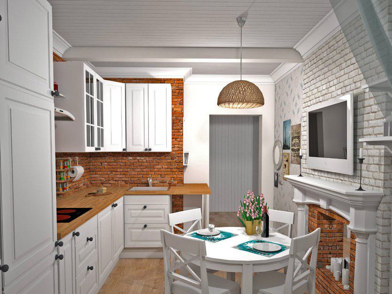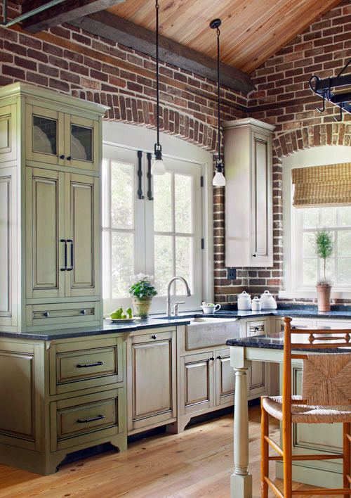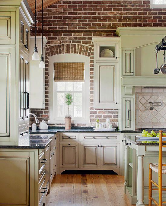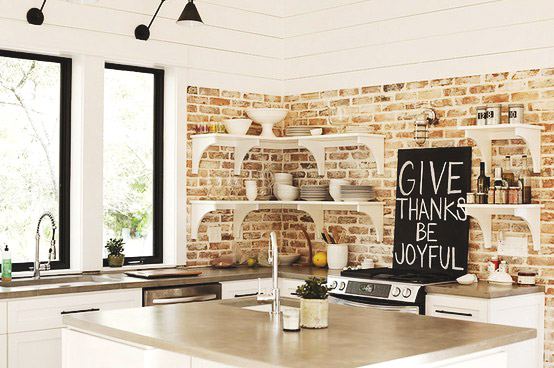 Galleria fotografica di interni cucina pronti, in cui è utilizzato il mattone rosso: