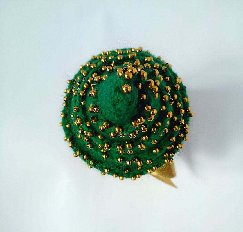 細編みを8つから始め、スパイラルに上昇していきます - 高くなるほど、層あたりの目は少なくなります。段数はお好きなだけ、私の場合は2段にしました。装飾とベースはお好みで。