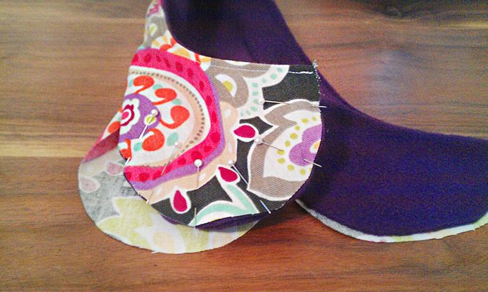 - 各側で約4cm縫います。青い点からパーツB\Cまで。