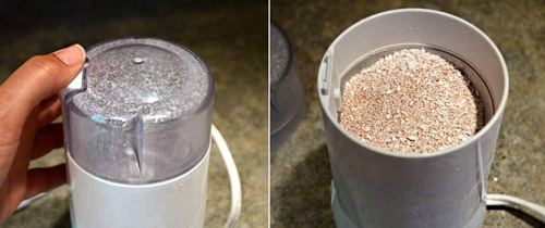 粉砕する前に、殻を完全に乾燥させる必要があります。最初の粉砕はブレンダーで行うことができ、壊した殻をボウルに入れます。より細かい粉砕はコーヒーグラインダーを使用して行います。細かければ細かいほど良いです。粉はしっかりと閉じた瓶に暗い場所で保管してください。