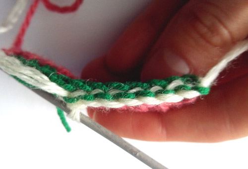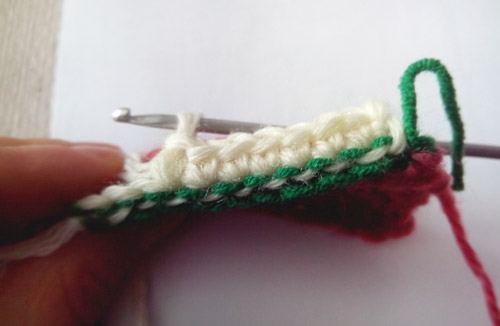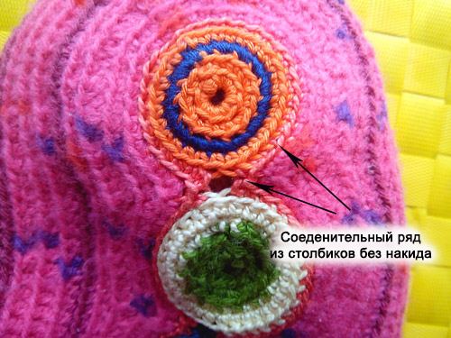 원형 모티브를 짧은뜨기로 감싸며 사진처럼 서로 연결합니다: