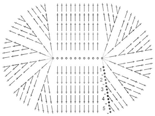 원형 모티브는 아래의 패턴에 따라 뜹니다. 라운드가 많을수록 파우치 크기가 커집니다:
