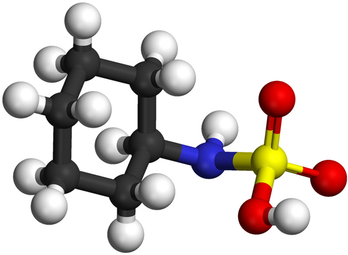99.8%의 물질이 소변과 대변으로 변하지 않은 채 배출되지만, 약 0.2%는 일부 장내 세균이 독성 탄화수소인 사이클로헥실아민으로 전환할 수 있습니다. 정상적인 사이클라메이트의 일일 권장량은 장에서 흡수되지 않고 완전히 배출됩니다(12, 13).