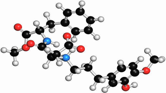 E951은 혈액에서 발견할 수 없으며, 권장 섭취량을 몇 배 초과하더라도 마찬가지입니다. 우리의 위장에서는 감미료가 세 가지 더 가벼운 분자로 분해됩니다: