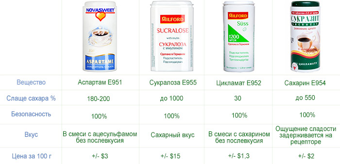 - 매우 높은 단맛 농도로 인해 E955는 수정된 전분이나 맥아당으로 테이블 형태로 혼합됩니다 - 이들의 당지수는 당뇨병 환자에게서 수크랄로스의 이점을 무효화합니다. 스티비오사이드에서도 동일한 문제가 발생합니다.