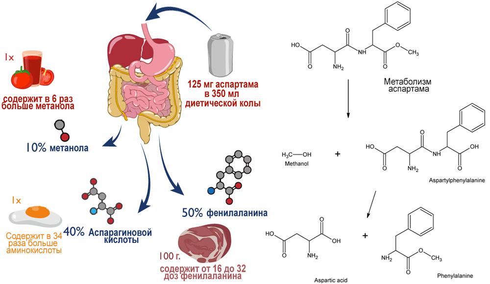 질문이 생깁니다: 그의 안전이 입증되었다면, 왜 이렇게 많은 논란과 “폭로” 프로그램이 TV에서 존재할까요? 아마도 대사 산물 때문입니다: 메탄올, 포름알데히드 및 아스파라기닉 산. 이 문제를 명확히 해보겠습니다.