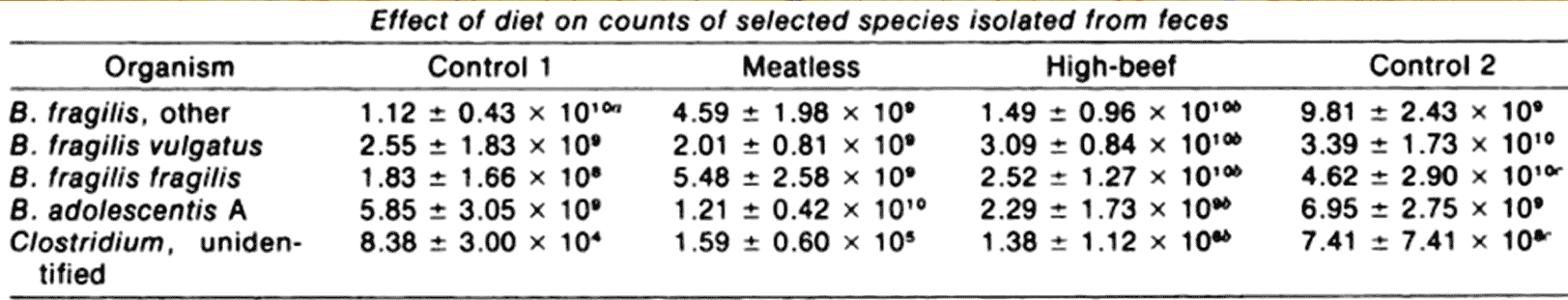 미생물 그래프는 1일부터 7일까지 작성되었지만, 세 번째 자원자는 5일째에 비정상적으로 좋은 결과를 나타내어 곡선에 영향을 미쳤다. “당뇨” 세균의 증가는 고단백 식이, 요거트, 알코올과 관련되어 있으므로, 사카린은 관련이 없다. 그러나 우리는 이들이 무엇을 먹었는지 알지 못한다.