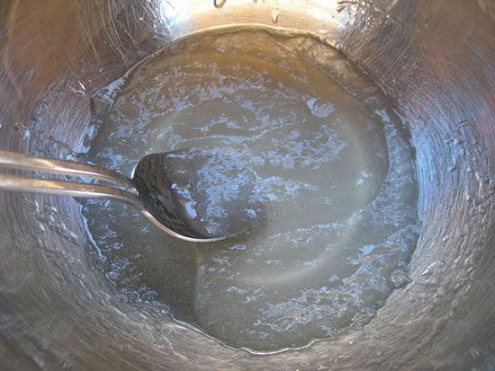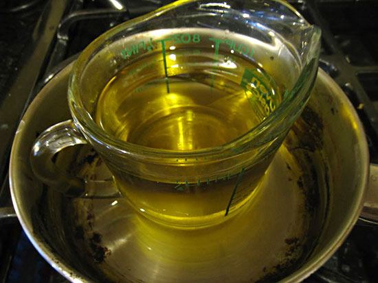- ڈبل بوائلر میں موم اور تیل کو مکمل پگھلنے اور یکجا ہونے تک گرم کریں۔